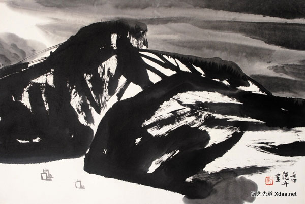 中国北京画院刘德舟属于最新一代的画家,他对山水风景画有自己独创的见解,大胆而自由地运用滴墨。
