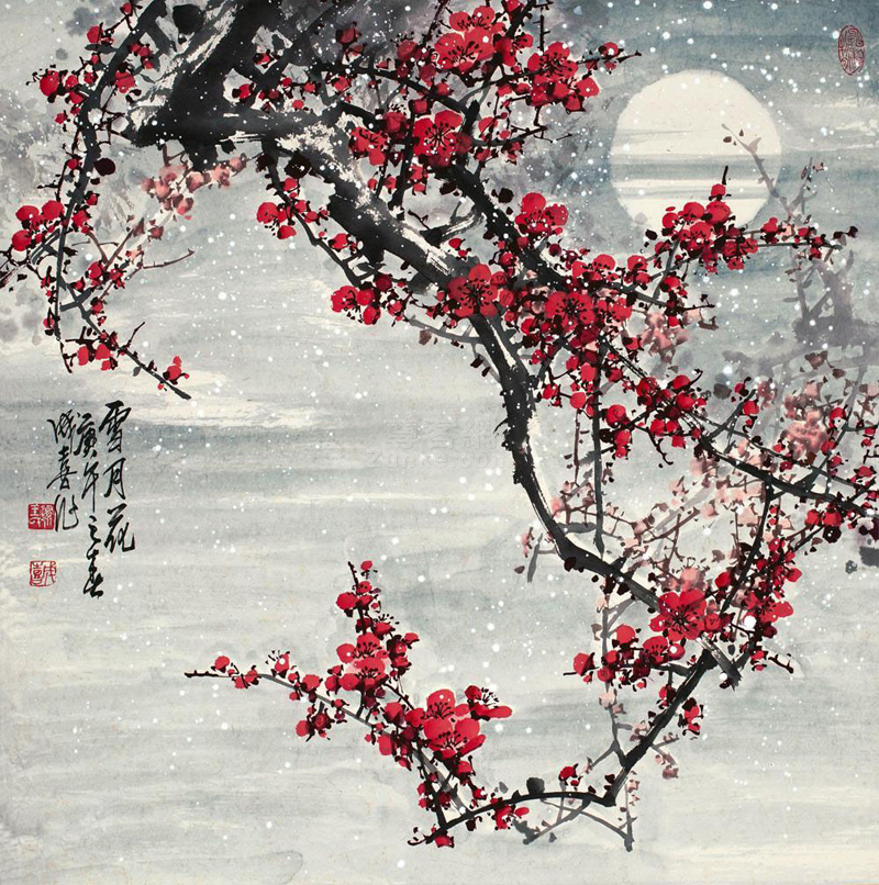王成喜梅花作品-雪月花