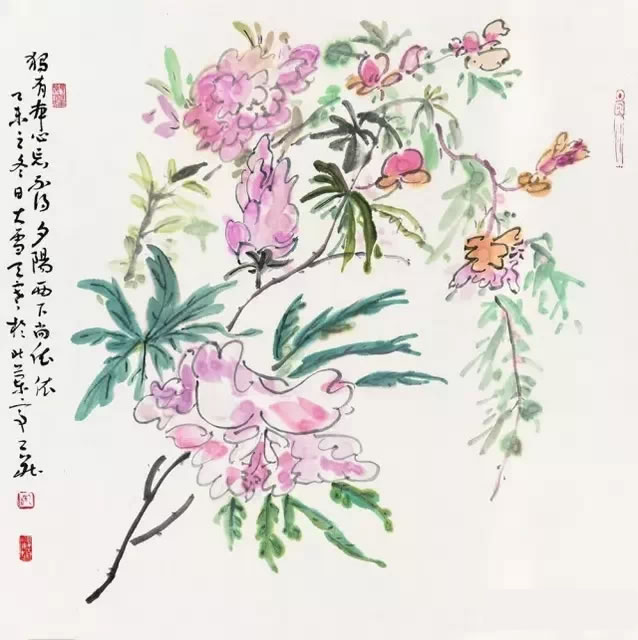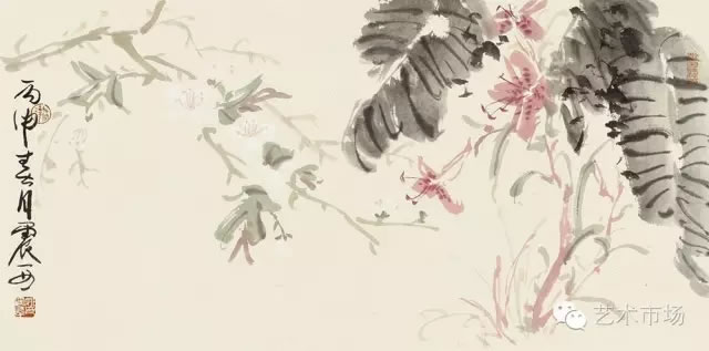 姚震西《丙申花卉》35cm×68cm